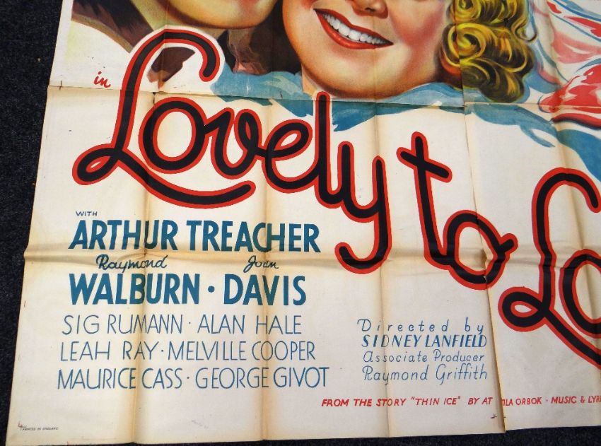 LOVELY TO LOOK AT original cinema poster from 1937, poster is numbered, folded and in four sections, wear around fold lines, 220 x 195cms (twelve-sheet)Provenance: http://www.bbc.co.uk/news/uk-wales-south-east-wales-40966146