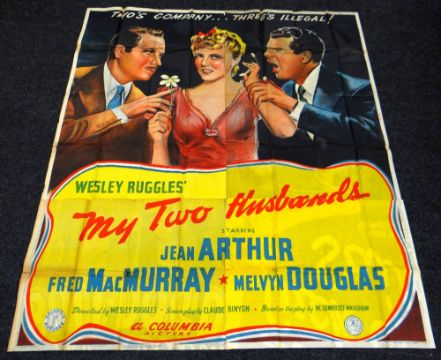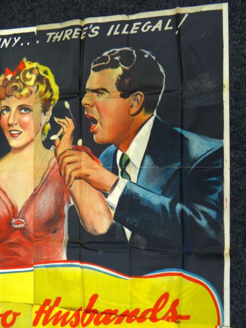 MY TWO HUSBANDS original cinema poster from 1940, poster is numbered, folded and in four sections, wear around fold lines, 220 x 195cms (twelve-sheet)Provenance: http://www.bbc.co.uk/news/uk-wales-south-east-wales-40966146