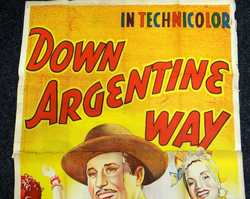 DOWN ARGENTINE WAY original cinema poster from 1940, poster is numbered, folded and in two sections, wear around fold lines, 220 x 100cms (six-sheet)Provenance: http://www.bbc.co.uk/news/uk-wales-south-east-wales-40966146