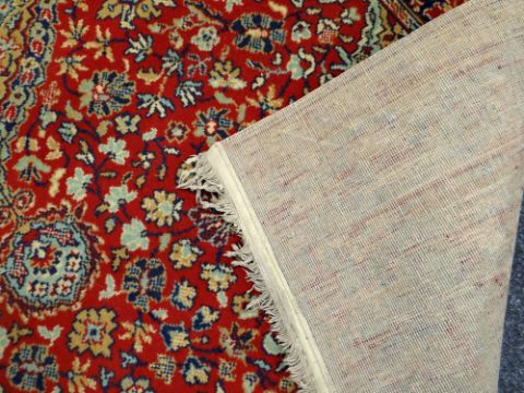 A RED & GREEN BRITISH WOVEN WOOL POLE RUG with traditional medallion design, 225 x 138cms