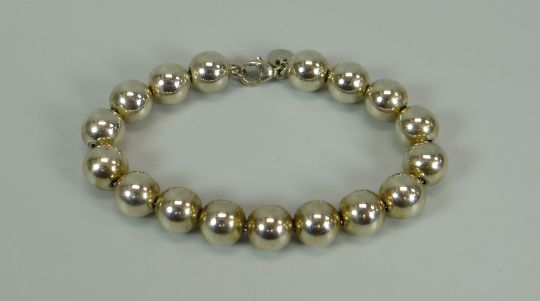 A 925 SILVER TIFFANY BEAD BRACELET with hallmarked circular tag to the clasp, 19gms