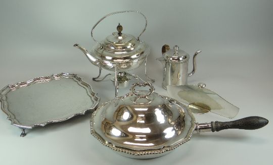 A PARCEL OF EPNS PURCHASED FROM THE ESTATE OF MEGAN LLOYD GEORGE in 1968, entree dish with turned handle has the Dwyfor crest