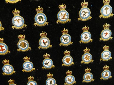 A DISPLAY FRAME OF ENAMELLED RAF SQUADRON BADGES