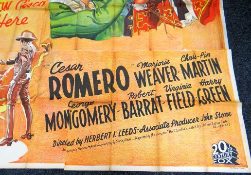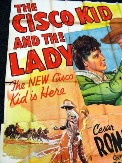 THE CISCO KID AND THE LADY original cinema poster from 1939, poster is numbered, folded and in five sections, wear around fold lines, 220 x 100cms (twelve-sheet)Provenance: http://www.bbc.co.uk/news/uk-wales-south-east-wales-40966146