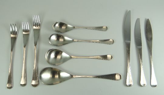 A SET OF OLD HALL ALVESTON CUTLERY BY ROBERT WELCH for a six place setting, in brushed satin stainless steel
