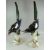 A PAIR OF MEISSEN PORCELAIN MAGPIES with open beaks pointing downwards and their tails up, perched on faux-rocky bases, blue cross swords mark, circa 1900, 55cms high