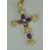 AN AMETHYST & SEVEN DIAMOND CRUCIFIX set in 9ct yellow gold on a 9ct fine necklace, 12.8gms