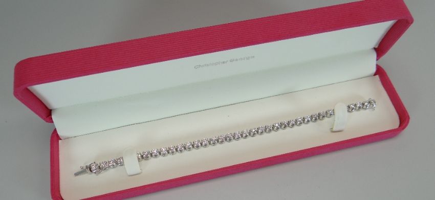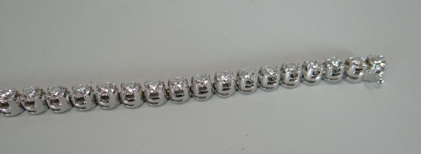 A SPECTACULAR DIAMOND TENNIS BRACELET with 36 round brilliant cut diamonds in an 18ct white gold claw setting, 19.2gms, each diamond approx 0.20ct, total 7.2ct (2010 insurance certificate with full specifications by Registered Valuer)