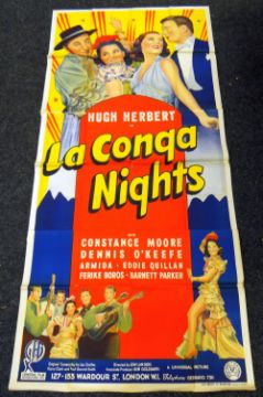 LA CONGA NIGHTS original cinema poster from 1940, poster is folded and in three sections, wear around fold lines, 220 x 100cms (six-sheet)Provenance: http://www.bbc.co.uk/news/uk-wales-south-east-wales-40966146