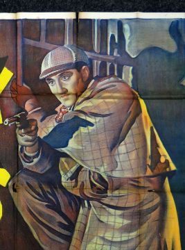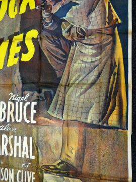 SHERLOCK HOLMES original cinema poster from 1940 featuring Basil Rathbone, poster is numbered, folded and in five sections, wear around fold lines and corners, 220 x 195cms (twelve-sheet)Provenance: http://www.bbc.co.uk/news/uk-wales-south-east-wales-40966146