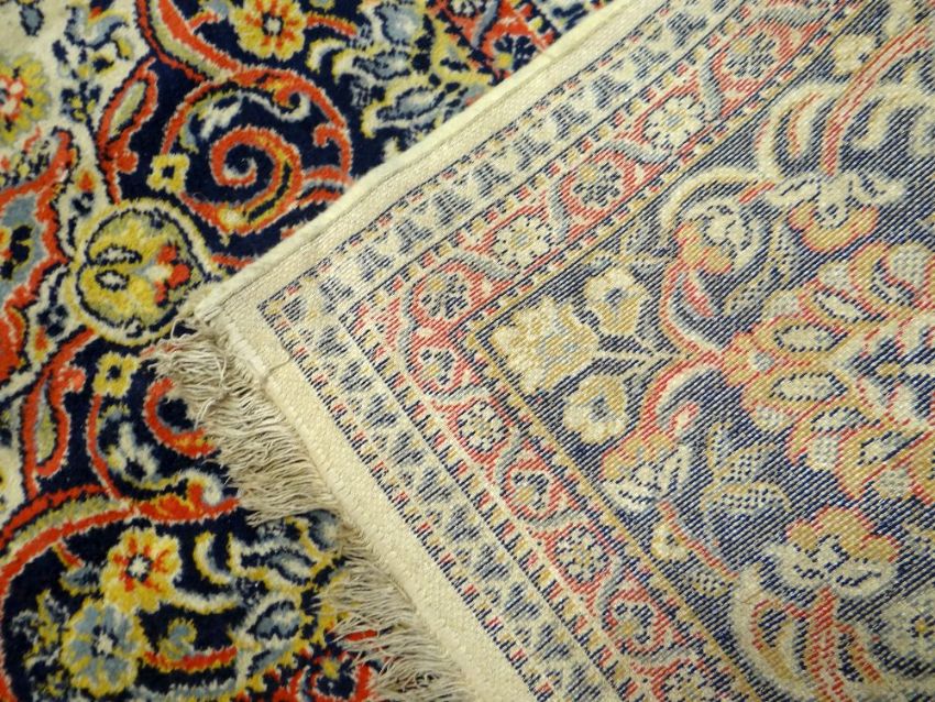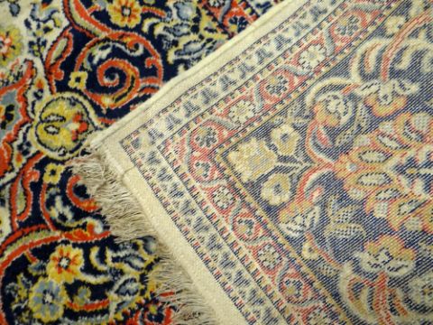 A LARGE IVORY GROUND PATTERNED RUG 330 x 250cms