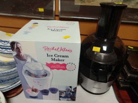 A new boxed ice cream maker together with a new unused Philips juicer
