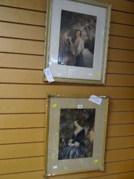 Two framed GEORGE BAXTER prints - ladies reading and posting letters