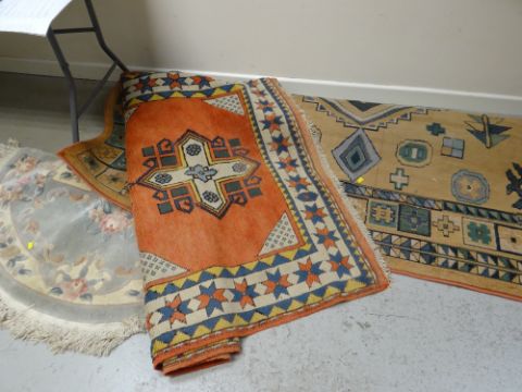 A large modern patterned rug together with an Oriental wool pile rug & a Chinese washed hearth rug