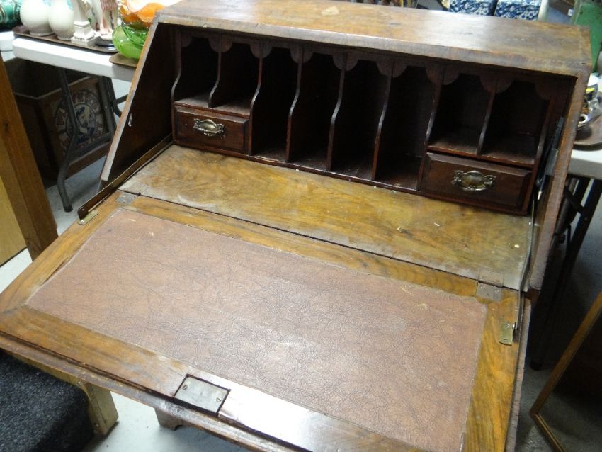 Vintage burr wood three drawer sloped bureau