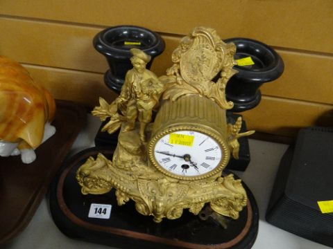Antique French gilt metal Rococo style clock with garniture vases