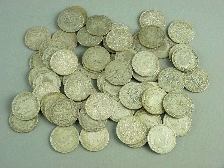 A PARCEL OF MIXED BRITISH SILVER HALF CROWNS, 27 troy ozs