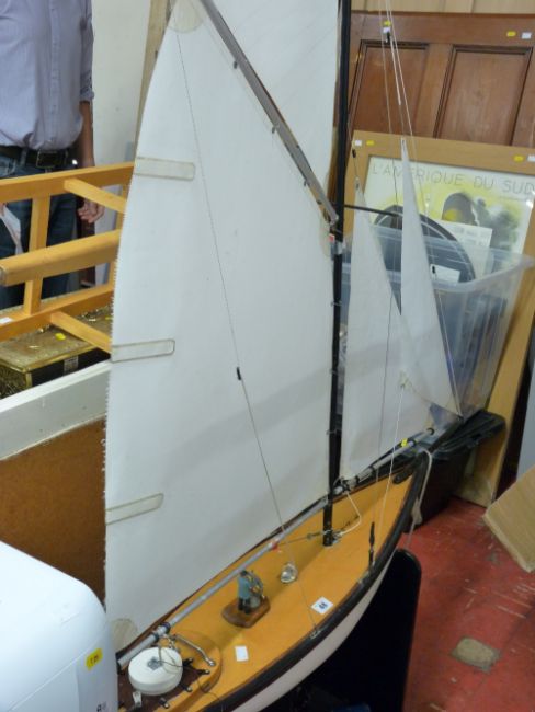 Fine pond yacht with full sails, transporting trolley, launch tool and radio control kit