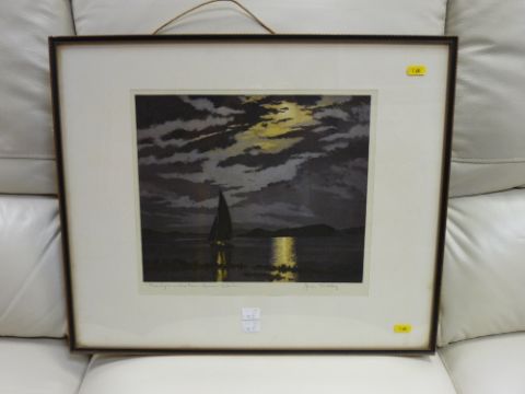 Signed print by JAMES PRIDDEY - 'Moonlight on the Mere, Hornsea, Yorkshire'