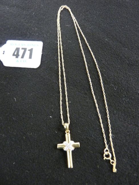 Nine carat gold Brooks & Bentley 'Eternal Love' diamond cross and neck chain, 4.2 grms