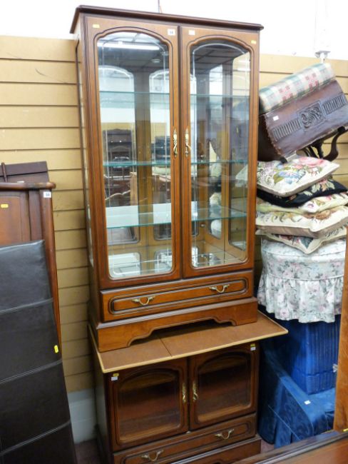 Excellent two door modern china cabinet with bevelled glass and similar entertainment cupboard