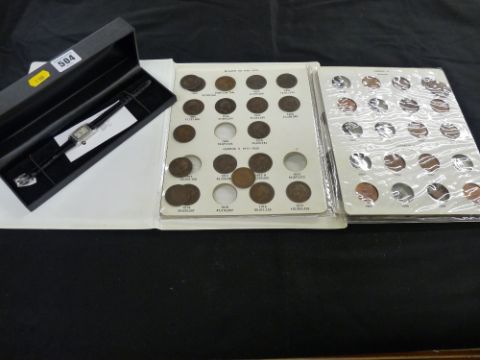 Album of 'Pennies of Great Britain 1902-1967' and a lady's oblong dial Quartz white metal wristwatch