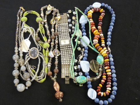 Parcel of dress necklaces and a Figaro cocktail wristwatch