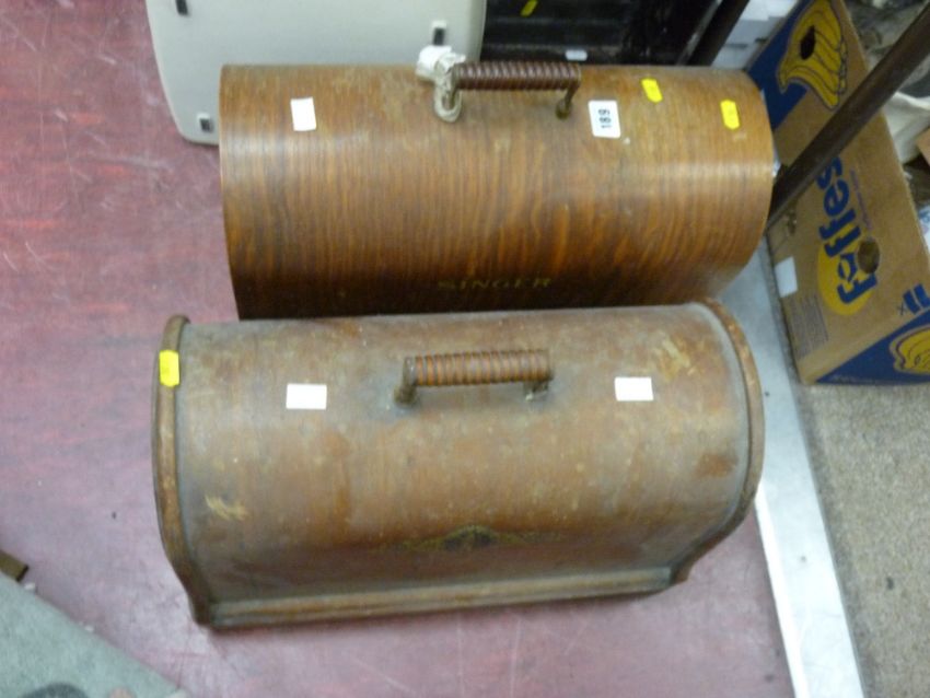 Two vintage cased Singer sewing machines