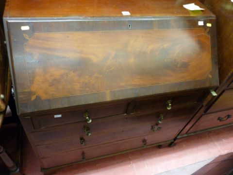 Mahogany bureau with pear shaped drop handles
