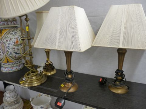 Four good brass effect table lamps (a pair & two others) E/T