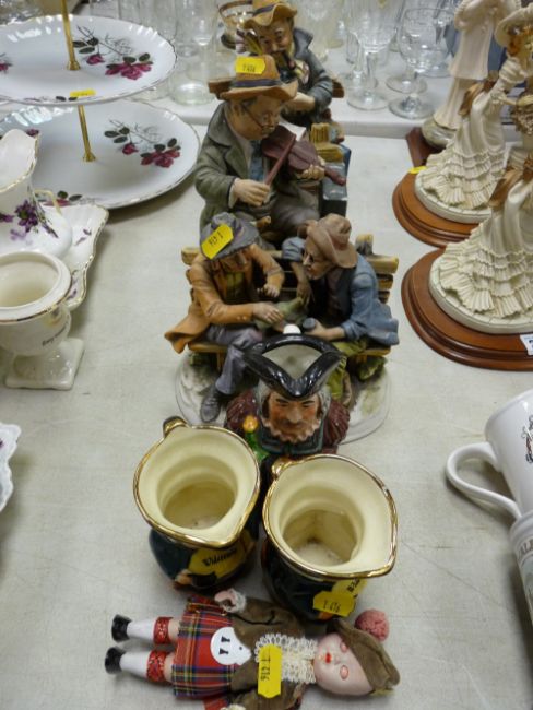 Three Capodimonte-style figures, three small Toby Jugs etc