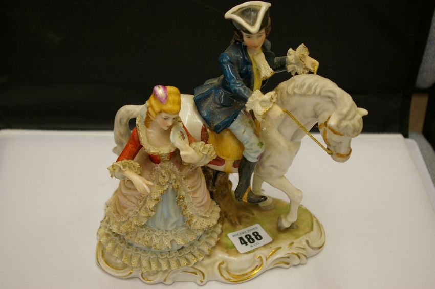 Continental figure of a gentleman on horseback with lady