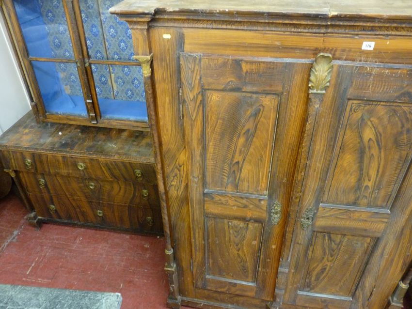 A continental scumble pine two-door armoire & near matching three-drawer chest