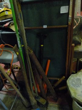 Parcel of garden tools & a deck chair