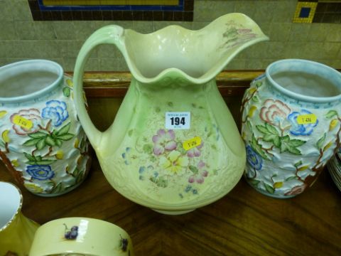 A pair of colourful vases by H J Wood & a Victorian water jug