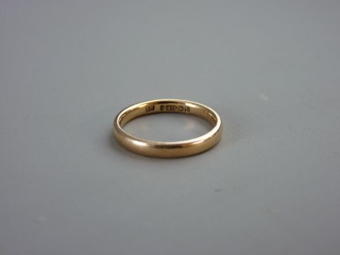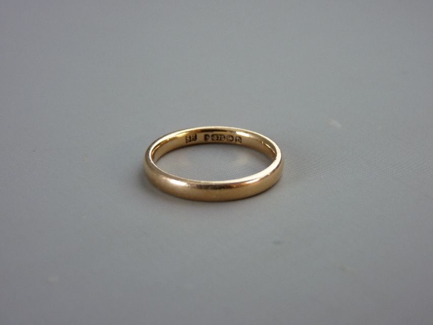 A NINE CARAT GOLD NARROW WEDDING BAND, 2.5 grms