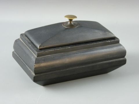 A WELSH SLATE FORK ART piece in the form of a lidded casket with brass knob to the lid, 10 cms high overall, 16 cms wide