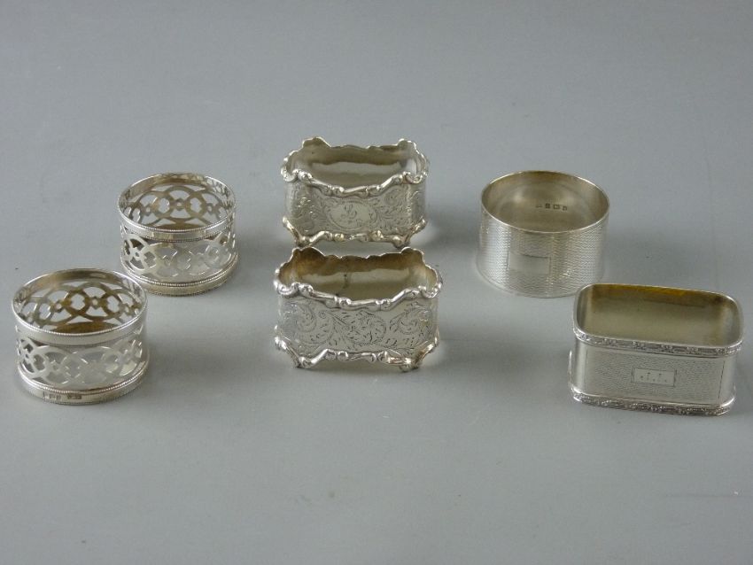 TWO PAIRS OF SILVER NAPKIN RINGS and two singles, 4.8 troy ozs
