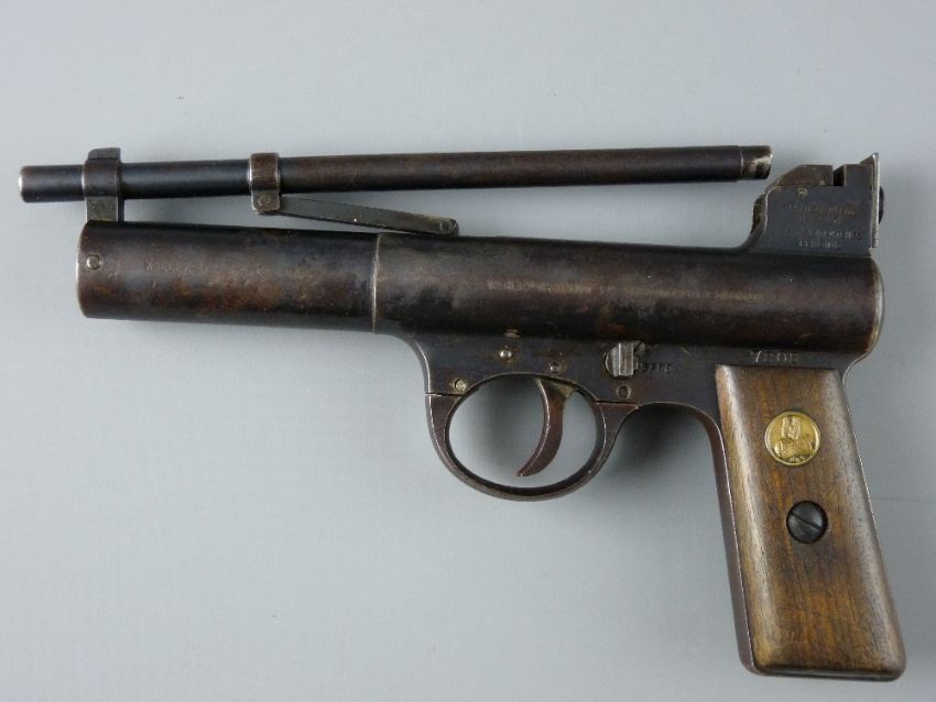 AIR PISTOL .177 Webley Mk1, straight grip, no. 7808, second series, all correct early features, made 1925, patents and patents pending on breech, good, weak pressure, 18 cms barrel
