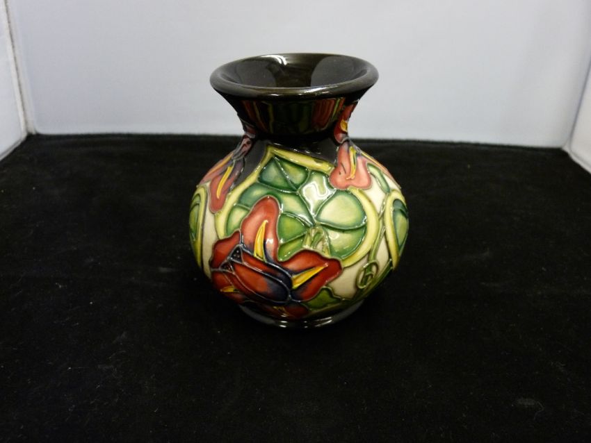 Moorcroft pottery squat vase (silver line strike)