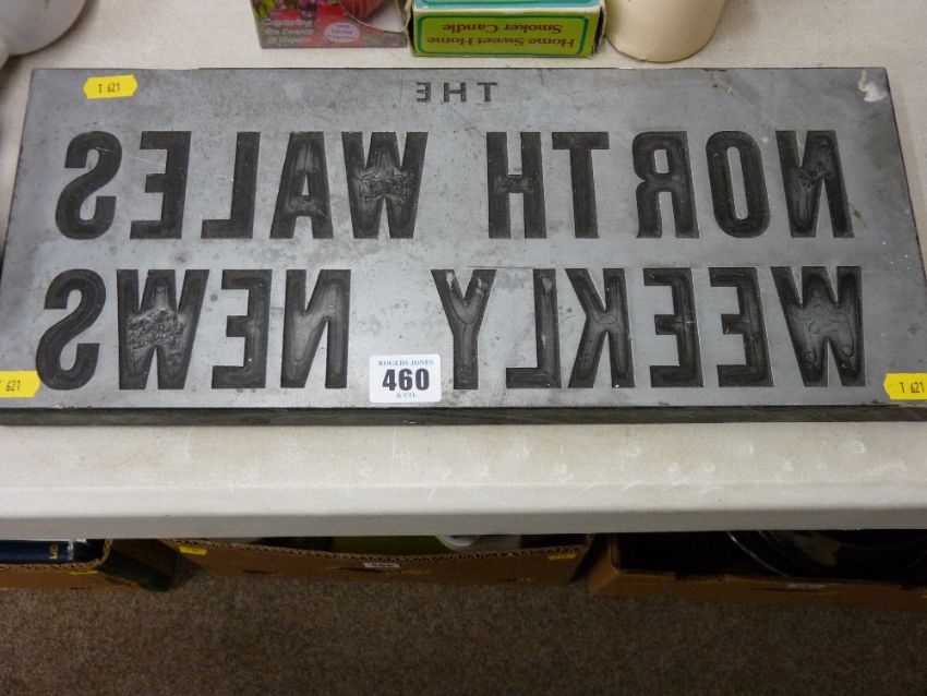 Printer's block for the North Wales Weekly News (extremely heavy)