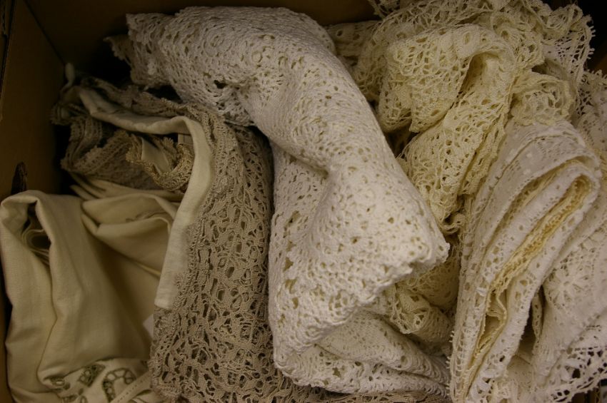 Box of crochet table and other linen