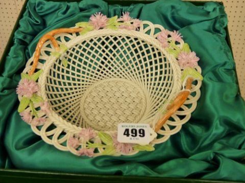 Belleek china reticulated basket with floral edge decoration (boxed)