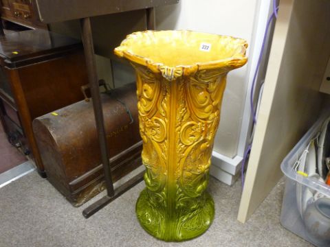 Staffs (probably Bretby) two tone floral decorated pedestal style stick/umbrella pot, 22 cms high