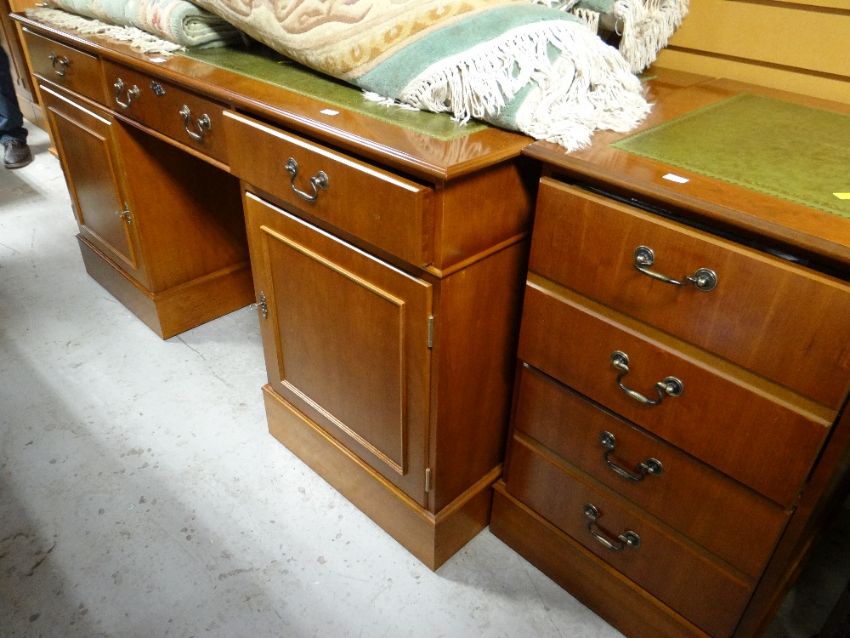 A reproduction pedestal computer desk with tooled leather top & matching filing cabinet