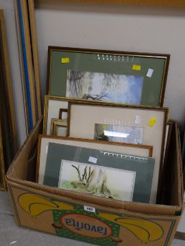 A parcel of framed watercolours etc