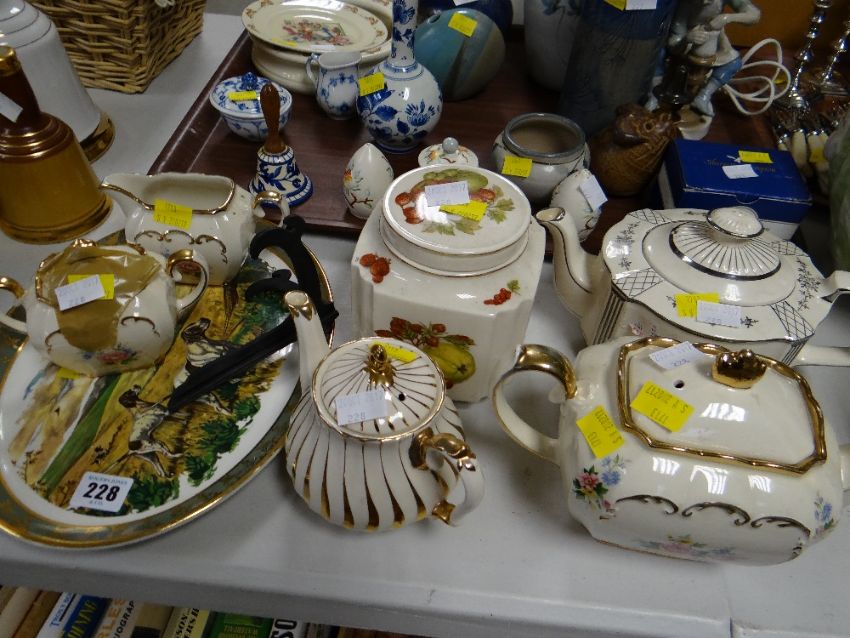 A vintage Sadler three-piece flower decorated teaset, two other Sadler teapots, storage jar etc