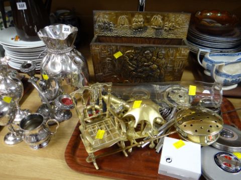A Spanish EPNS vase in the form of a sack & a parcel of mixed brassware etc