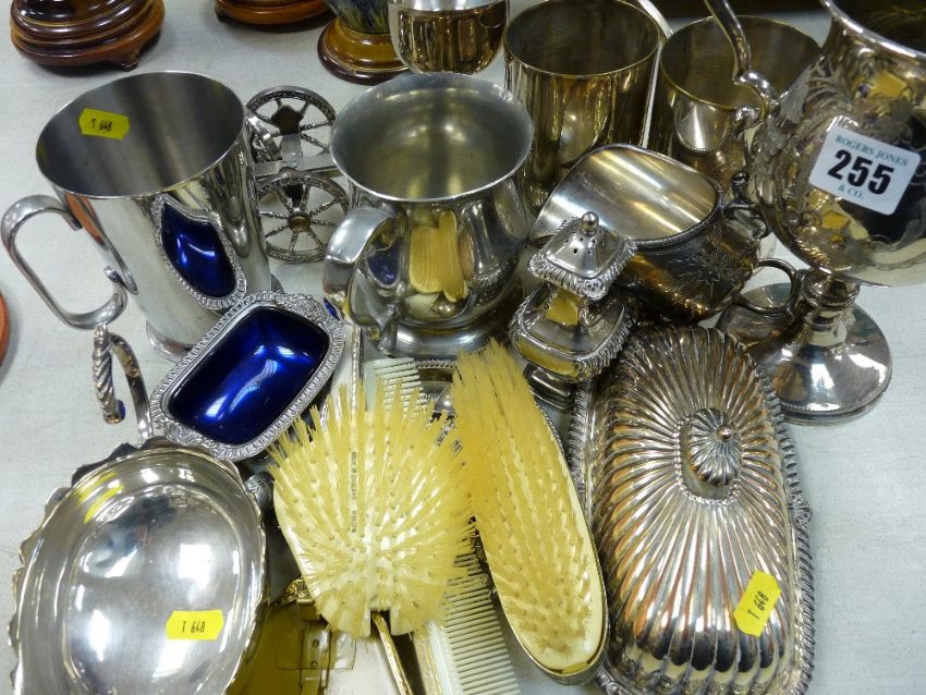 Quantity of mixed electroplate ware including tankards, trophies etc