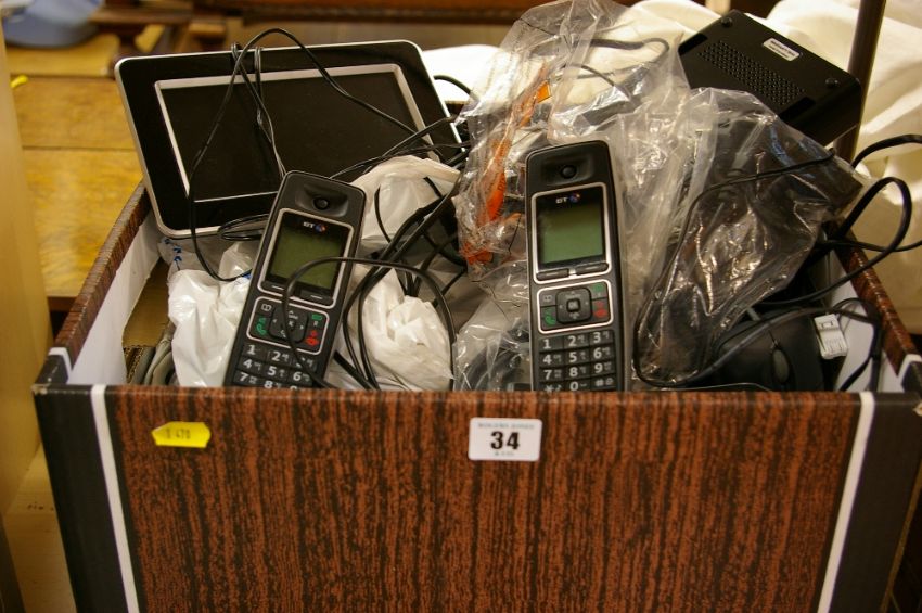 Box of computer cables, BT phone system and other hook-up cables etc E/T